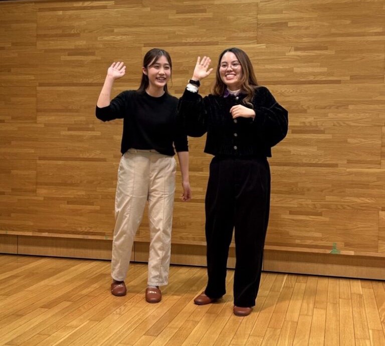 2人1組で「鏡合わせのお芝居」の練習。お題に合わせて相手の動きに合わせたり、逆に自分の動きを合わせてもらったり!