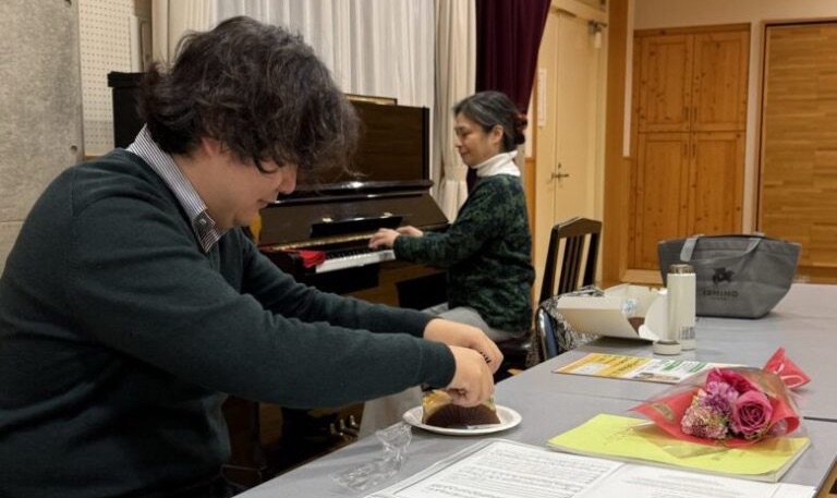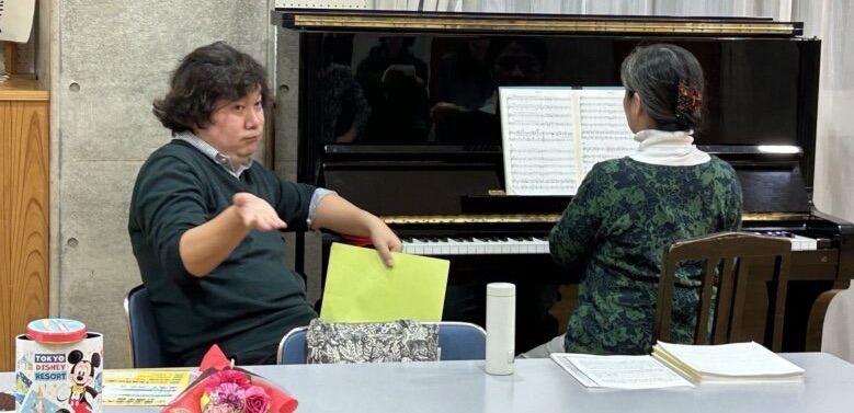 今日のちちぶオペラの稽古も、いつも通り薗田先生がピアノに座り、発声練習が始まる…と思いきや、突然照明が消えて…