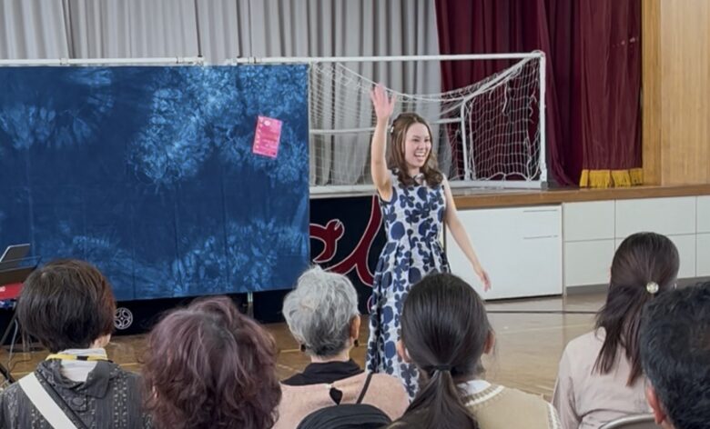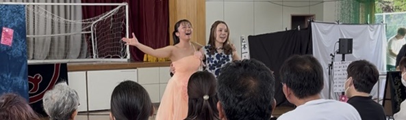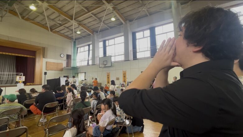 会場のみなさんと一緒に掛け声の部分と合唱部分を練習し、最後にはお客様にも前に出てきてもらい、一緒に歌いました。