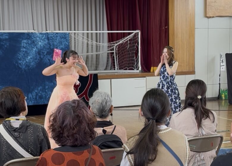 “市役所の前で知り合いに出会った”という設定で、歌のお姉さん2人が即興で披露しました。