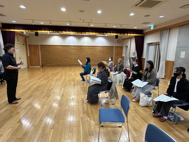 歌の稽古では、次の本番に向けて合唱練習をしました。