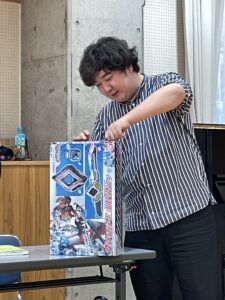 今日の稽古は、なんとおもちゃの開封式から始まりました。